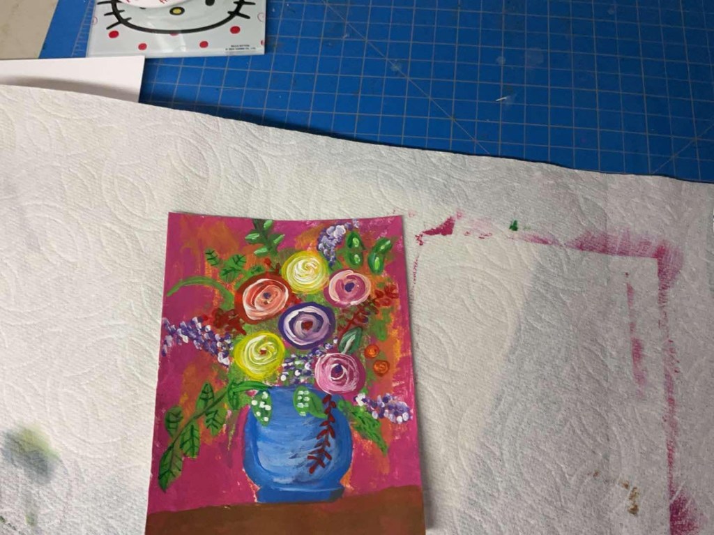 I painted the second one by myself and made it into a birthday card to my aunt.